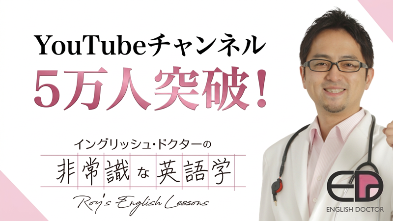 - YouTubeチャンネル「イングリッシュ・ドクターの非常識な英語学」のチャンネル登録者数が5万人を突破しました。