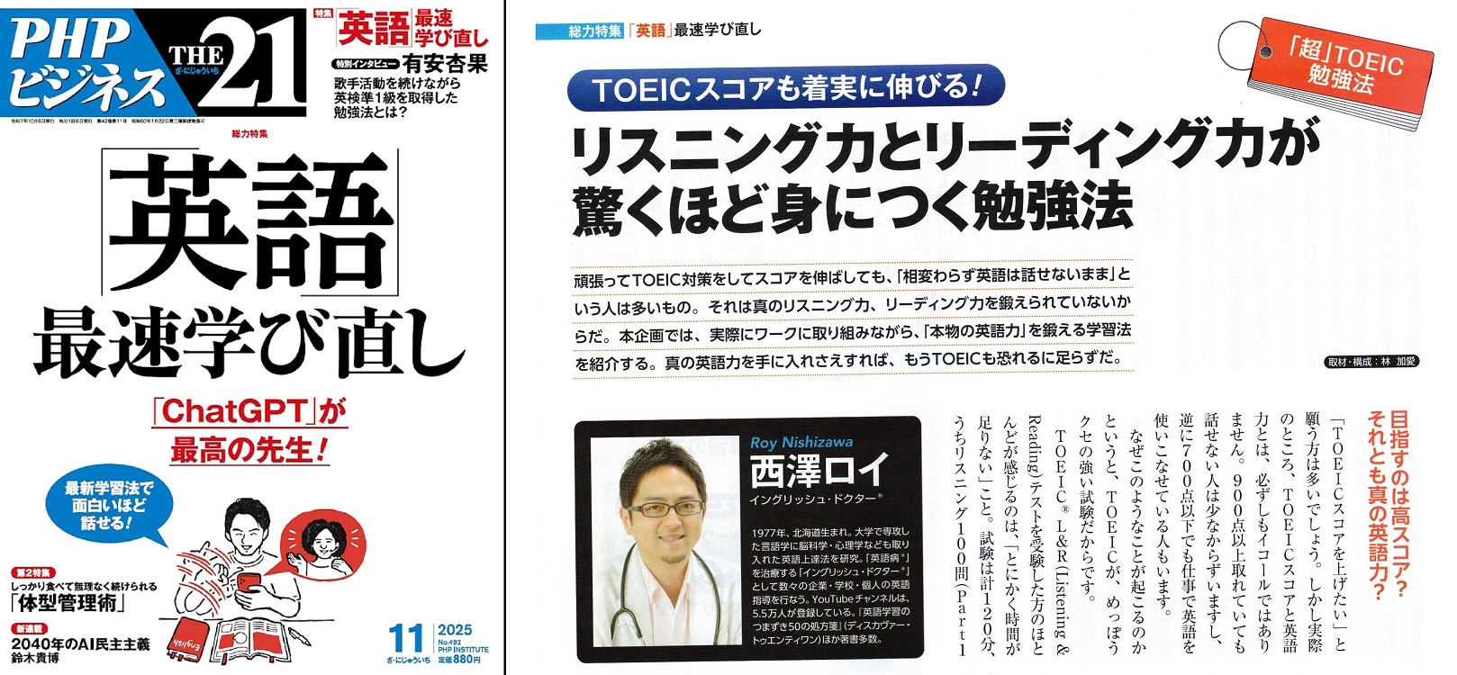 - 雑誌「THE21」の特集「英語最速学び直し」に掲載
