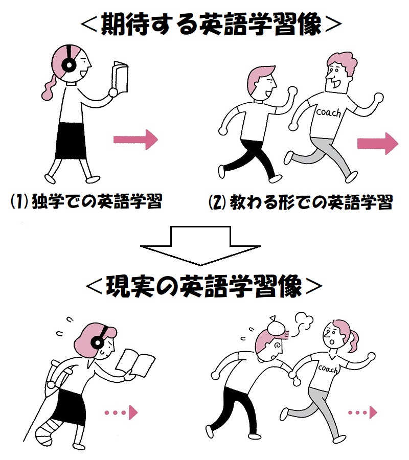 多くの英語学習者は以下のように、スムーズに上達できるつもりで勉強していますが、実際には様々な「英語病」を併発しています。